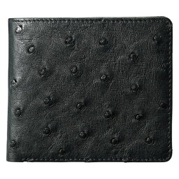 オーストリッチ ダチョウ革 本革 財布 札入れ ボックス型 小銭入れ付 マット ブラック